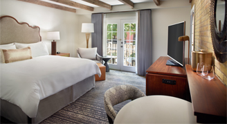 Relax in a spacious guest room that offers comfortable accommodations for couples or friends and family traveling together. Deluxe Rooms offers views of the European style pool, lush courtyard or breathtaking city views.