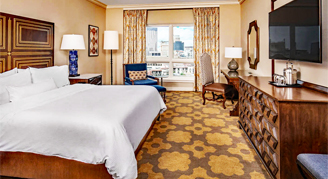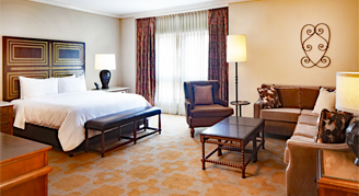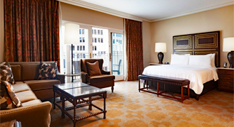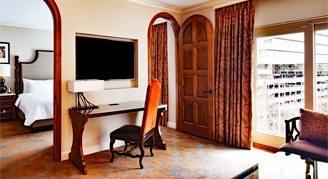 These rooms with private balconies overlook San Antonio's famous River Walk. Features include refreshment centers, a large work desk and a 42-inch flat-screen TV with premium movie channels.