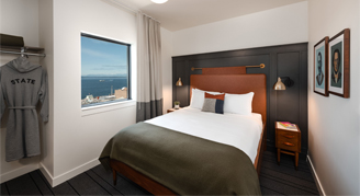 Located in the heart of downtown Seattle, just steps away from Pike Place Market, The State Hotel provides an immersive experience in history, local art and adventure. Originally built in 1904 as a medical office, the Eitel building was later transformed in the 1930s by Ben Paris, a Seattle entrepreneur, to be used as a billiard parlor, gambling hall and restaurant. Almost a century later, it’s been converted into a contemporary, independent, downtown Seattle hotel with 91 guestrooms, the Ben Paris restaurant to honor the building’s past, fitness center and an intimate rooftop terrace, available only to hotel guests, with picturesque views of the market and the Seattle waterfront.