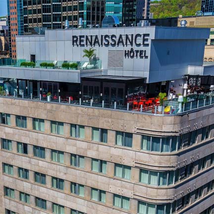 1250 Blvd Robert-Bourassa, Montreal, Quebec, H3B 3B8, CanadaIn the heart of downtown Montreal, steps from the iconic Place Ville Marie and the shopping hub of St. Catherine Street, a design adventure awaits you. Featuring splendid rooms and a lobby inspired by local street art, this sophisticated hotel perfectly blends business with pleasure. The hotel's Navigators know their way around the hotel and the city. Showcasing the only rooftop terrace in the downtown area, the happening panoramic lounge has a full bar and bistro kitchen.